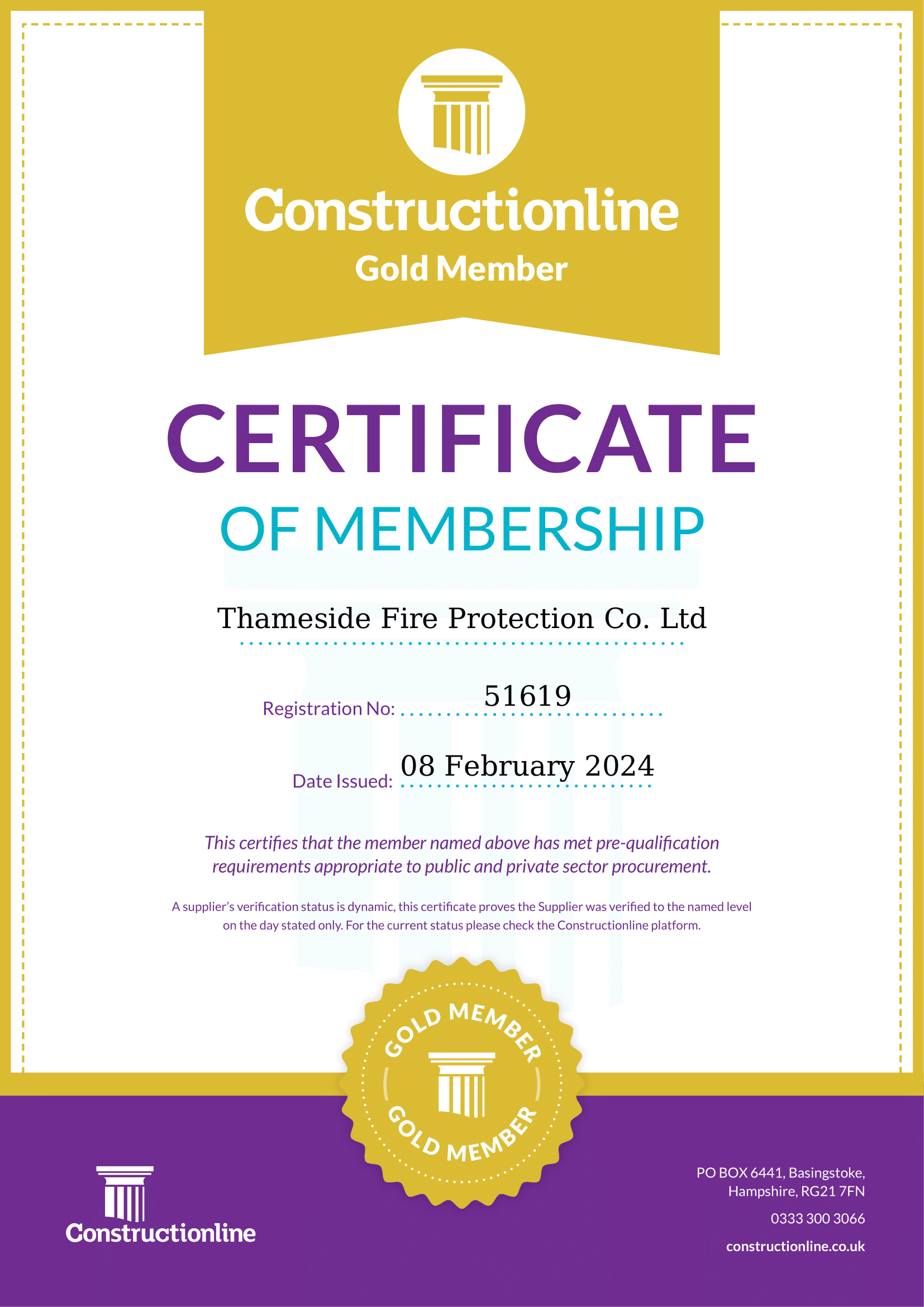 At Thameside Fire Protection, we are delighted to share that we have been awarded of the Constructionline GOLD certificate.